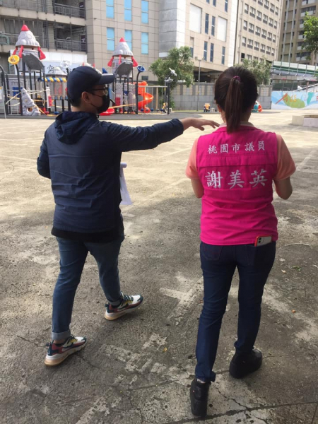 中壢區星河親子公園使用率高,大小朋友假日最佳去處。 民眾反映,美中不足的是,星河公園的公廁又髒又亂,小朋友不敢靠近、不敢上廁所。 美英自己走了一趟,發現星河公園廁所簡陋,如廁隱私也讓人擔憂。 安全、便利是公園公廁最重要的原則,美英邀區公所共同會勘,爭取更新公廁、協助確認施作點位,讓大小朋友都安心。